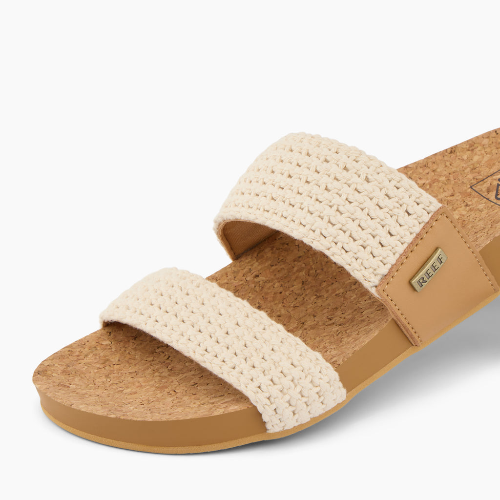 Die Reef Cushion Vista Damen Zehentrenner Natural Crochet Textile (CJ7138) verbinden sommerliche Leichtigkeit mit natürlichem Look. Das gehäkelte Textil-Design verleiht der Sandale eine feminine, trendige Ausstrahlung, während das bewährte Cushion-Fußbett für optimalen Tragekomfort sorgt.